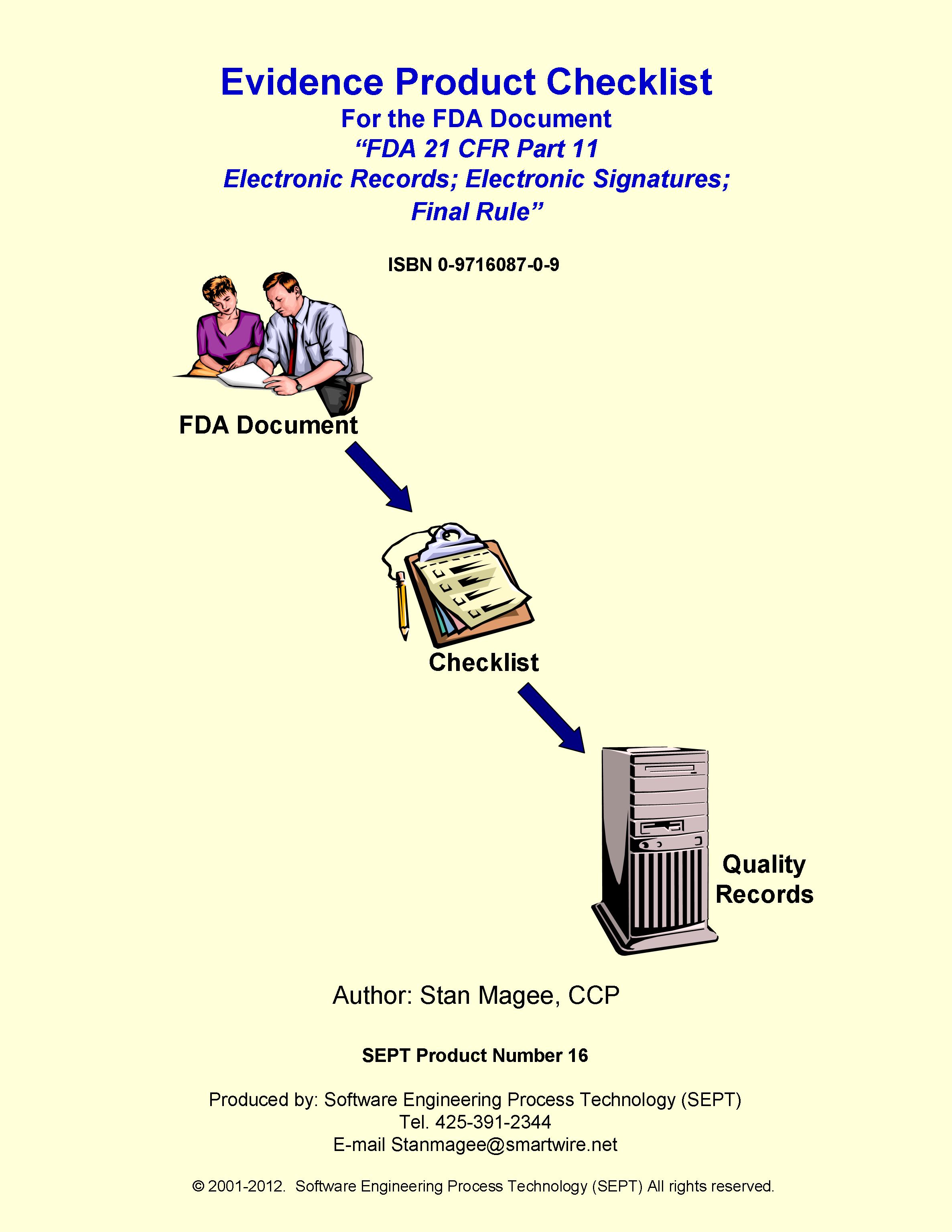 Note: “International Standards (ISO) define the best of practices for Medical Device and Software firms in producing a quality product. This checklist that SEPT produces will ensure that all of the best of practices are adhered to.”